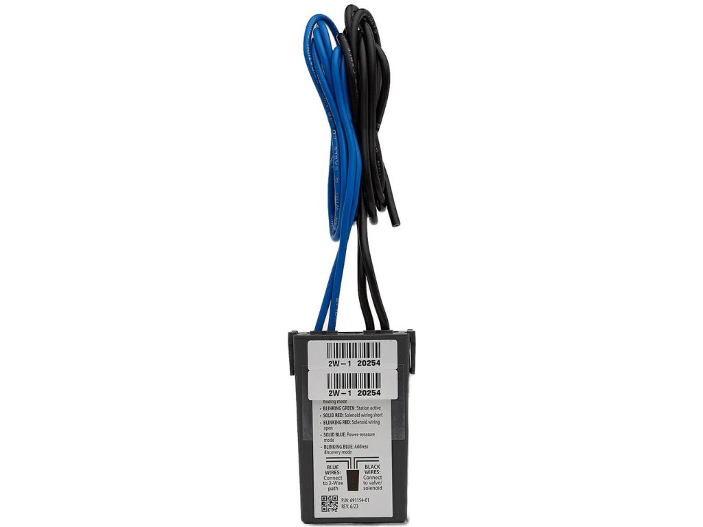 Dekodér 2W-1 je navrhnutý pre maximálnu spoľahlivosť a jednoduchú integráci. Je kompatibilný so všetkými 24V AC elektromagnetickými ventilmi Rain Bird, čo zaručuje široké možnosti použitia. Vďaka diagnostickej LED dióde priamo na dekodéri je riešenie prípadných problémov v teréne rýchle a efektívne. Inštalácia je jednoduchá, dekodér sa pripája priamo na dvojžilové vedenie a automaticky sa identifikuje riadiacou jednotkou ESP2 WIRE vďaka funkcii Decoder Auto-Address.