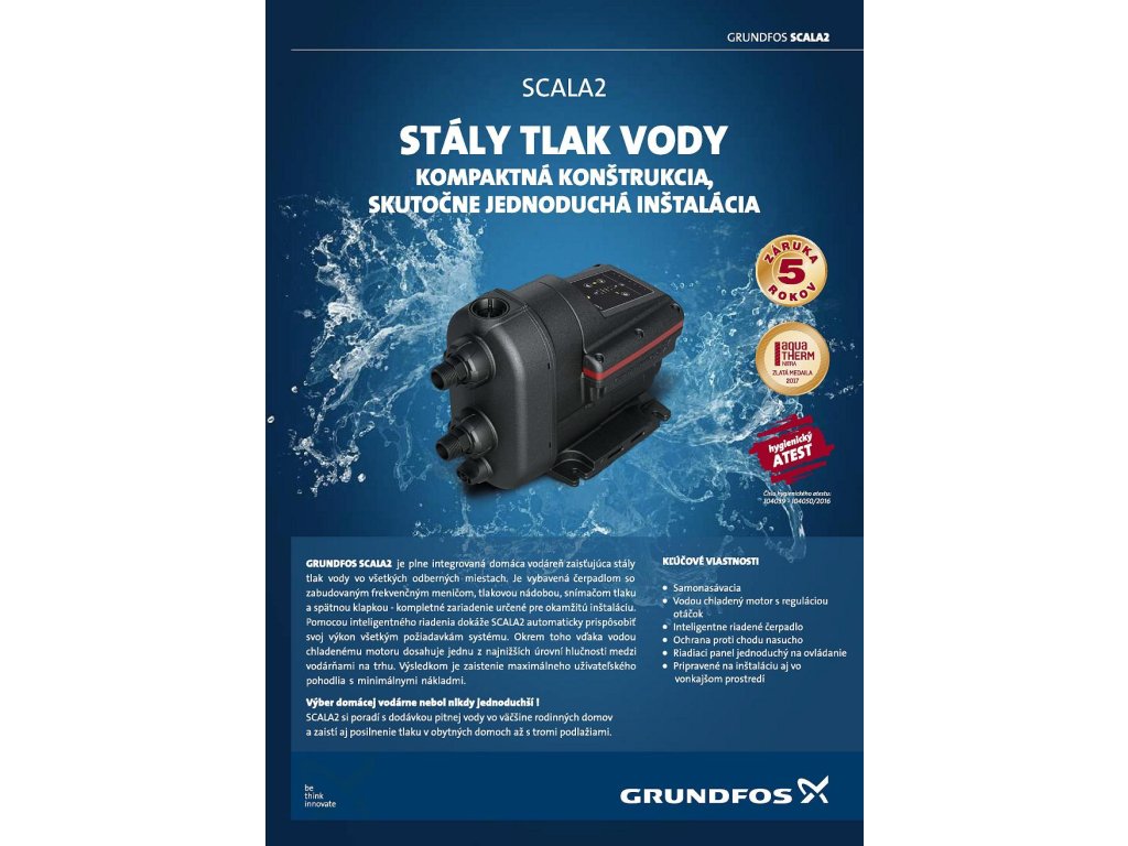 Domáca vodáreň GRUNDFOS SCALA2 má samonasávacie čerpadlo, vodou chladený motor s reguláciou otáčok a ochranou proti chodu nasucho. Pripravená na inštaláciu aj vo vonkajšom prostredí.