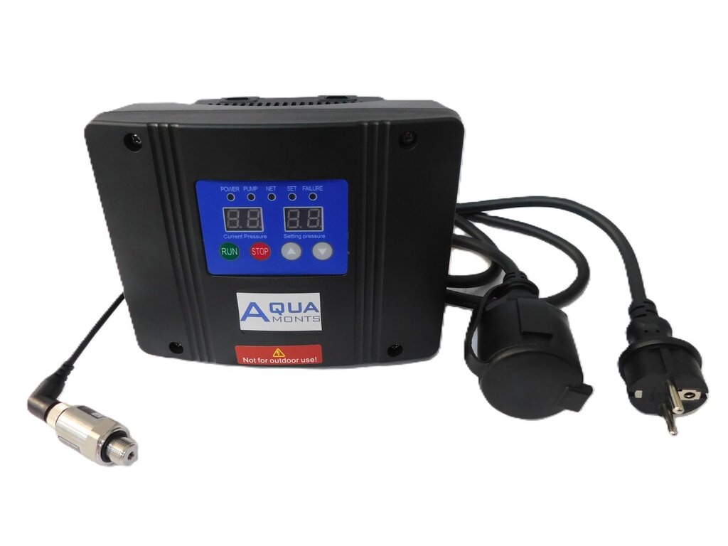 Návod na stiahnutie Frekvenčný menič KOMPAKT AD-12M 1,5kW 1x230V pre čerpadlo Frekvenčný menič KOMPAKT je určený na reguláciu odstredivých čerpadiel. V cene je aj tlakový senzor s konektorom, menič je určený na montáž na stenu, ale má aj aktívne chladenie. Pri tomto meniči nie je nutné robiť žiadny test pri prvom spustení, stačí iba nastaviť požadovaný tlak v systéme. Menič automaticky reguluje tlak v systéme a zapína a vypína čerpadlo podľa odberu vody. FREKVENČNÝ MENIČ regulácia na konštantný tlak v systéme chráni vaše investicie pred poškodením zvyšuje uživateľský komfort šetrí energiu AKO FUNGUJE Po otvorení kohútiku, alebo spustení závlahy začne klesať tlak v systéme. Riadiaca jednotka frekvenčného meniča prostredníctvom snímača tlaku vyhodnotí situáciu a spustí čerpadlo. Otáčky čerpadla sú regulované tak aby bol udržovaný konštantný tlak v systéme aj pri meniacom sa odbere. VEĽMI JEDNODUCHÁ INŠTALÁCIA A INTUITÍVNE OVLÁDANIE Pri prvom spustení nie je nutné nič nastavovať iba tlak v systéme. Prúd meniča aj ochrana proti chod na sucho je prednastavená. Čerpadlo zastavíme, spustíme, tlak pridáme, uberiame jednoducho a rýchlo, kedykoľvek keď potrebujeme. KONTROLNÝ PANEL VÁS VŽDY INFORMUJE či čerpadlo pracuje, alebo stojí či je prítomné napájacie napätie ak došlo k poruche, informuje nás, o akú poruchu sa jedná TECHNICKÉ ÚDAJE max. výkon pripojeného čerpadla 1,5kW s napätím 1x230V vstupné napájanie 1x230V so zástrčkou kryt meniča IP55, s aktívnymi chladičmi tlakový senzor s konektorom, pripojený k meniču výstupný kábel so zásuvkou PRÍKLAD INŠTALÁCIEDodatočné parametre