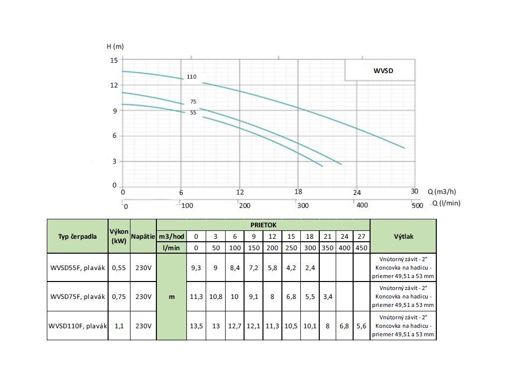 Kalové ponorné čerpadlo SHIMGE WVSD55F-0,55kW, 230V s plavákom