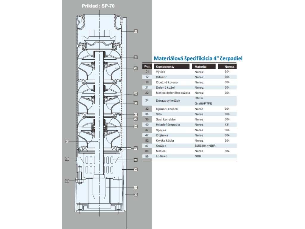 - Ponorné čerpadlo 4" celonerezové SP-2512 230V; 1,1kW s voliteľným káblom