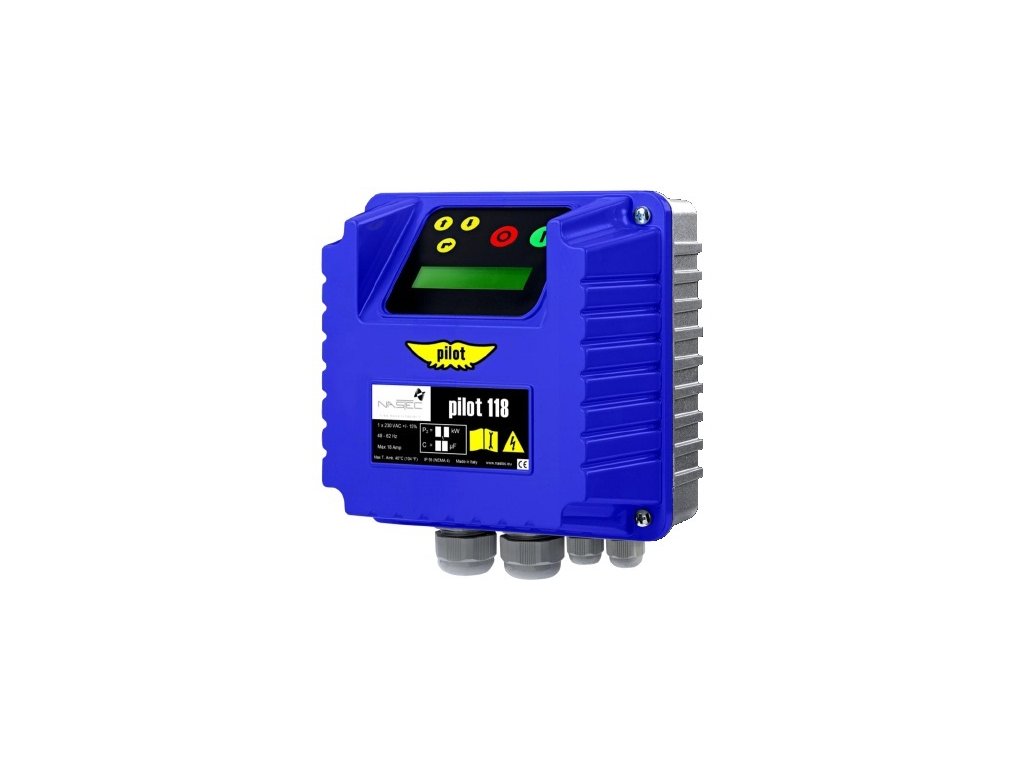 PILOT je elektronické zariadenie pre ovládanie jednofázových a trojfázových motorov čerpadiel, ktoré poskytuje ochranu proti nadprúdom, výpadku fázy, častým štartom čerpadla. Aktuálny odber prúdu je zobrazovaný na LCD displeji a v prípade prekročenia nastavenej hodnoty prúdu PILOT zastaví čerpadlo. Maximálny počet štartov čerpadla je tiež nastaviteľný a PILOT zastaví čerpadlo ak je táto hodnota prekročená. PILOT zobrazuje hodnotu účinníku (cos φ) a je možné nastaviť minimálnu hranicu pri normálnej prevádzke. PILOT zastaví čerpadlo ak hodnota klesne pod nastavenú pri chode čerpadla na sucho. PILOT vykoná 5 automatických reštartov nasledujúcimi poruchovým hlásením v časových intervaloch, ktoré je možné nastaviť. PILOT uchováva v pamäti počet štartov čerpadla a počet hodín prevádzky čerpadla. Tiež sa ukladá história poruchových hlásení pre asistenciu pri servise. Obal je vyrobený kompletne z hliníka čo zaručuje pevnosť a dostatočné chladenie. Krytie IP55 umožňuje inštaláciu vo vlhkom a prašnom prostredí. PILOT je možné použiť aj pre priame spúšťanie (D.O.L.) ďalších čerpadiel v čerpacích staniciach s frekvenčným meničom, pre plnú elektrickú ochranu týchto čerpadiel. Tiež obsahuje: 2 digitálne vstupy, nastaviteľné ako normálne otvorený (N.O.) alebo normálne zatvorený (N.C.) kontakt pre pripojenie externých spínačov. Tieto kontakty (beznapäťové) umožňujú zapínanie a vypínanie čerpadla plavákmi, tlakovými spínačmi, tepelnou ochranou, atď... 1 výstupný relé kontakt pre externú poruchovú signalizáciu (250 VAC alebo 30 VDC, max. 5 A). Je nastaviteľný ako N.O. alebo N.C.Dodatočné parametre