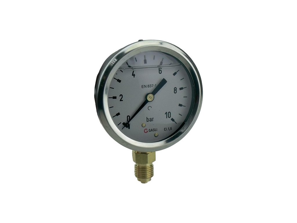 Manometer vhodný pre domáce vodárničky o ø50mm so spodným šróbením 1/4".Merací rozsah je 0-11Bar.Presnosť meranej hodnoty je 2,5%.