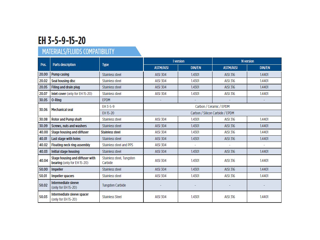 - EH je celonerezové odstredivé čerpadlo, nie je samonasávacie