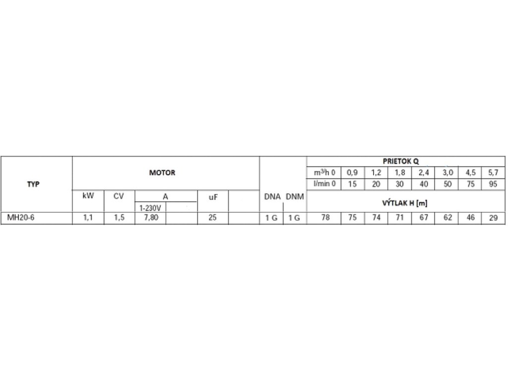 ODSTREDIVÉ POVRCHOVÉ ČERPADLO MH 20-06 1,1KW, 230V