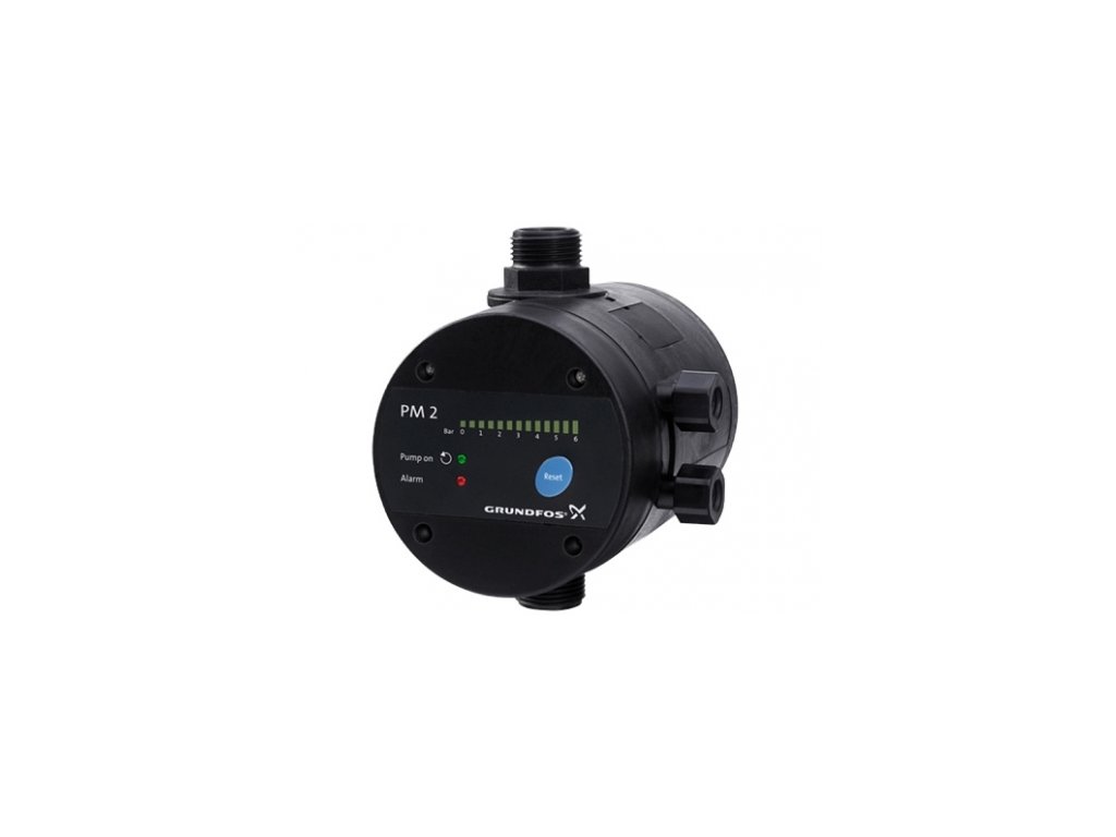 Ovládacia jednotka Grundfos PM2, 230V, 1", max.10A a max.pracovný tlak 10BAR.Je určena pre aplikácie s tlakovou nádobou. Možnosť nastavenia vypínacieho a zapínacieho tlaku. Zapínací tlak môžme nastavit v rozmedzí 1,5 - 5 BAR. Má integrovanú malú tlakovú nádobu.Jednotka má vstavanú ochranu proti chodu na sucho a el.krytie IP65.Dodatočné parametre