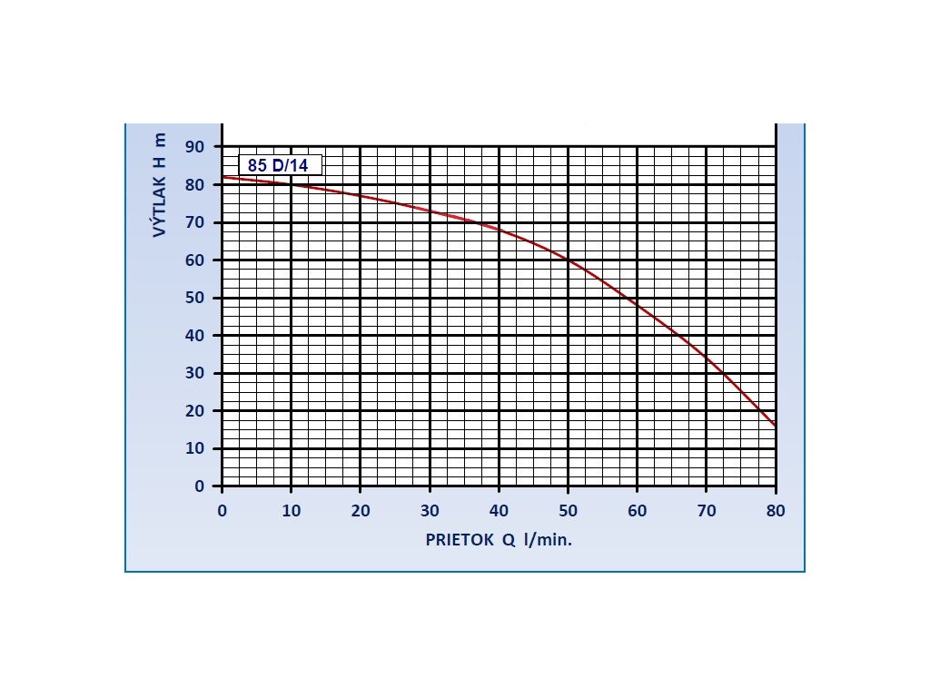 Pracovná oblasť čerpadla: H= 80-16 m, Q= 10-80 l/min. Do vrtov do Ø109 mm. Regulácia fr. meničom na konštantný tlak.