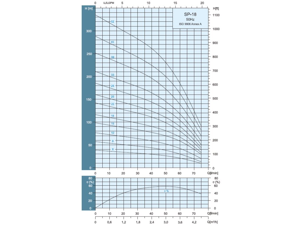 SP sú ponorné čerpadlá vyrobené z nerez ocele, ktorá je odolná voči korózii a abrázii. SP rada čerpadiel je vyrábaná podľa najvyššieho štandardu s dôrazom na energetickú efektivitu, spoľahlivosť a výkon. Disponujú robustnou konštrukciou a majú dlhý servisný interval aj pri náročných aplikáciách. Vysoká účinnosť čerpadla znamená nižšiu spotrebu energie a tým nižšie prevádzkové náklady. Všetky kovové diely sú vyrobené z nerez ocele AISI 304 s výnimkou hriadele, ktorá je vyrobená z nerez ocele AISI 431. Výtlačná hlava čerpadla z nerezovej ocele pre veľké zaťaženie so zabudovaným spätným ventilom pre vysokú životnosť a jednoduchú inštaláciu. Nerezová spojka vysokej pevnosti zabezpečuje vyrovnanie čerpadla / motora.
