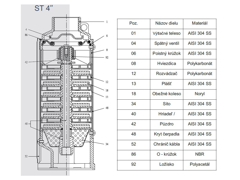 Čerpadlá STAIRS série ST4 sa vyrábajú s použitím vysoko kvalitných materiálov a ich konštrukcia umožňuje dlhoročnú spoľahlivú prevádzku.