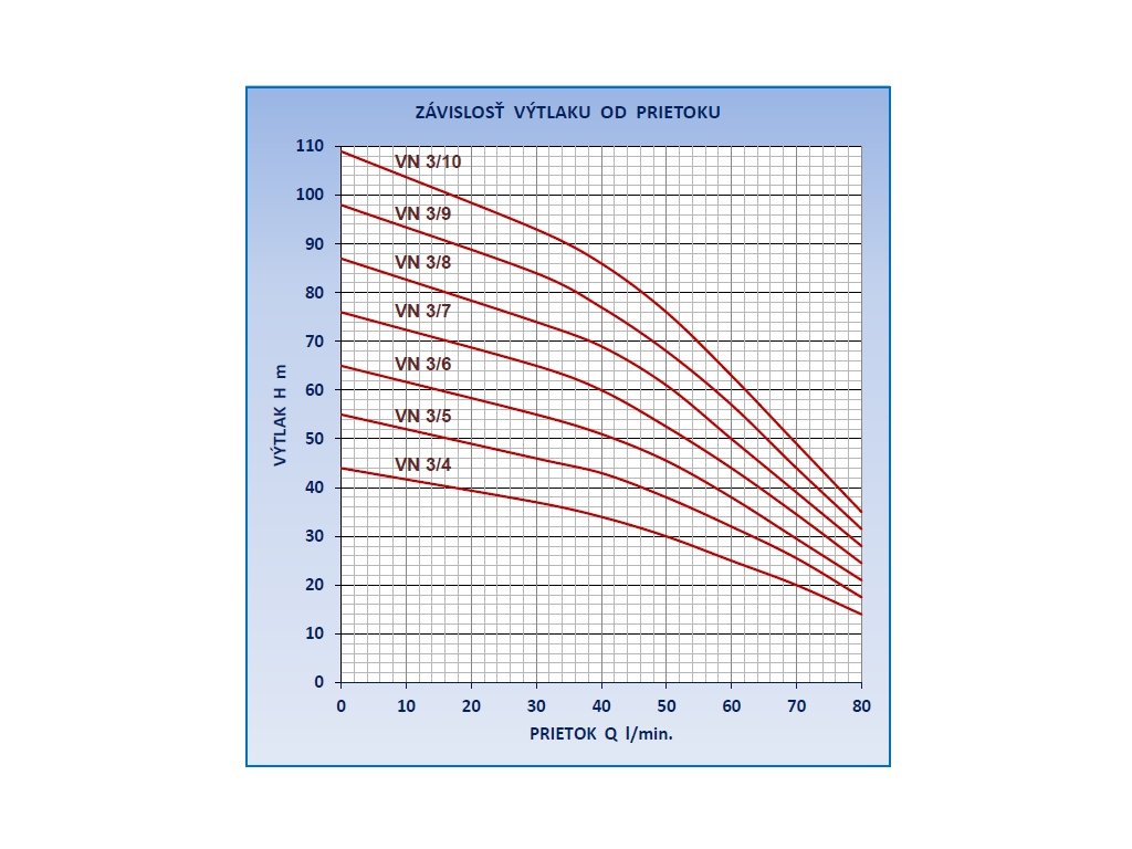 Pracovná oblasť čerpadla: H= 55-18 m, Q= 0-80 l/min. Monoblokové čerpadlo do kopaných studní a nádrží.