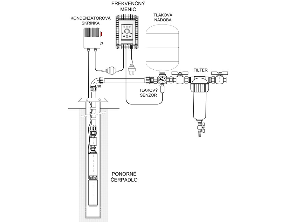 - Ponorné čerpadlo 5" celonerezové VN 3/9 230V; 1,5kW s 20m káblom 4Gx1,5 s kondenzátorovou skrinkou ukončenou zástrčkou (Napájací kábel pripájame u nás a v prípade potreby vieme dodať aj kábel s inou dĺžkou k čerpadlu ako 20m. Šírka kábla sa so stúpajúcou dĺžkou a výkonom zväčšuje.)
