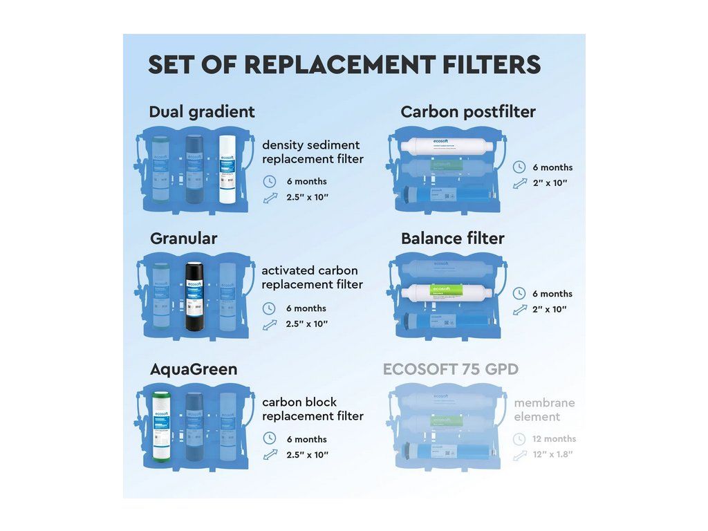 Sada 5 náhradných filtrov pre RO PURE Balance obsahuje: