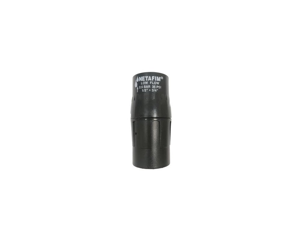 Regulátor tlaku Netafim typ LOW FLOW 32PRV.75-LF35V2 s prednastaveným výstupným tlakom 2,5 bar. Rozsah prietoku 1 až 16,6 l/min. Určený na reguláciu tlaku pre inštalácie v mikrozávlahách s nízkym prietokom. Max. pracovný tlak 8 bar. Pripojenie 3/4"F na vstupe, na výstupe 1/2"F.Dodatočné parametre
