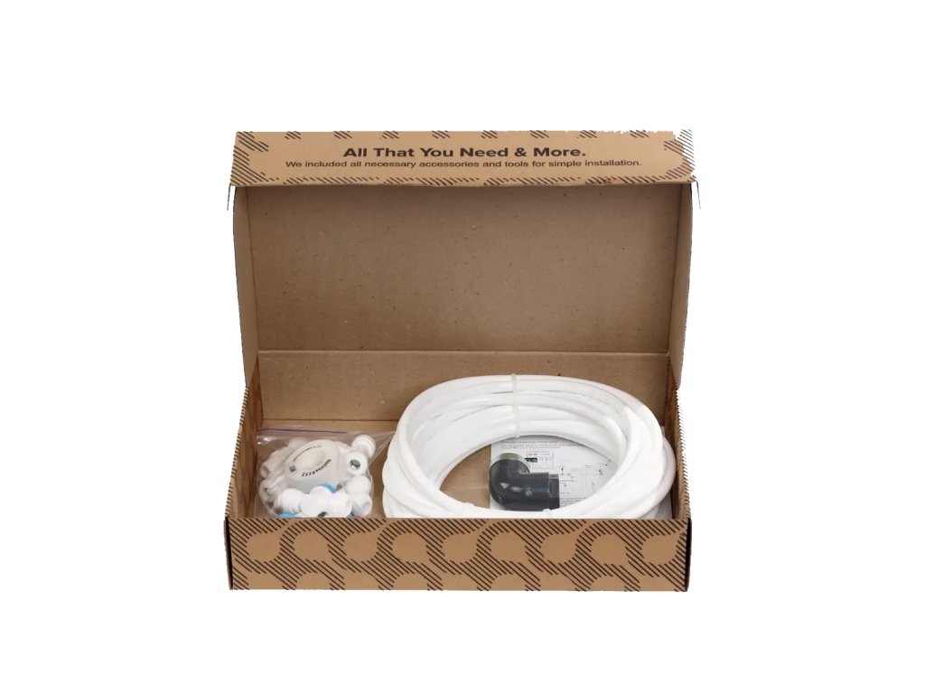 Zlepšite svoj systém čistenia vody pomocou súpravy Ecosoft Robust Connection Kit - príslušenstva pripraveného na inštaláciu špeciálne pre bezproblémovú integráciu so systémami spätnej osmózy Ecosoft Robust. Táto súprava, ktorá je vyrobená pre pohodlie a spoľahlivosť, umožňuje bez námahy pripojiť váš systém RObust k tlakovej nádrži s pripojením 3⁄4" a až tromi spotrebičmi - nie je potrebné žiadne lepidlo ani ďalšie nástroje. Táto bezproblémová súprava zefektívňuje inštaláciu a optimalizuje nastavenie vody s presnosťou a ľahkosťou.