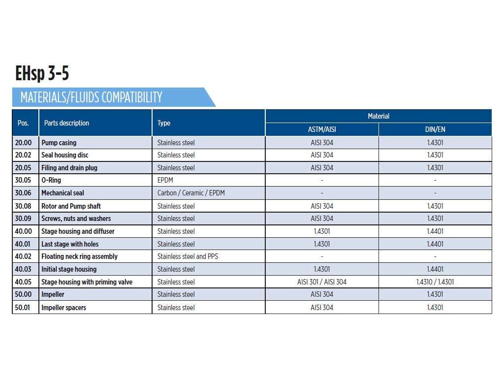 - EHsp je prvé horizontálne viacčlánkové samonasávacie čerpadlo s kompletne nerezovým (AISI304) odvzdušňovacím ventilom, ktorý zabezpečuje samonasávaciu schopnosť čerpadla