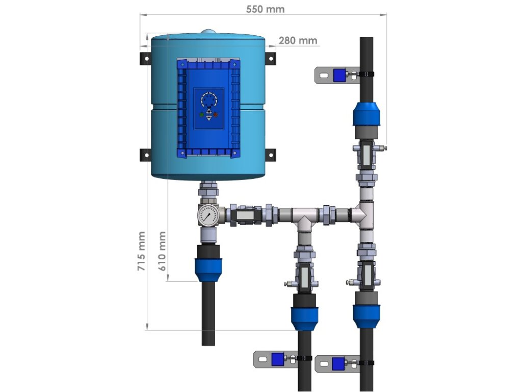 Tento vodárenský SET je určený na použitie spoločne s ponornými odstredivými čerpadlami. SET je vyskladaný tak, aby plne vyhovoval aj náročným požiadavkám zákazníkov na funkčnosť a vzhľad. Je určený na priamu inštaláciu na stenu a vďaka variabilite si sám zákazník môže určiť smer, ktorým bude SET otočený. SET obsahuje tri odbočky, každá s vlastným guľovým ventilom. Pripojovacie rozmery sú veľkosti 1".