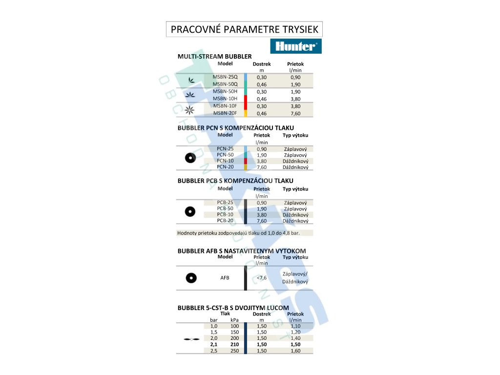 Tryska bubbler PCB 50, 1.9l/min s reg.tlaku, záplavový