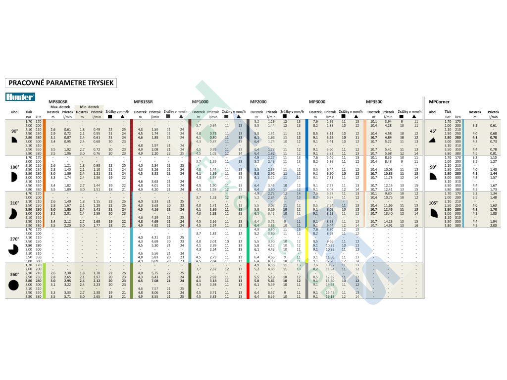 Tryska MP-2000-210, dostrek 5,2-6,4m, nast. uhol 210°-270°