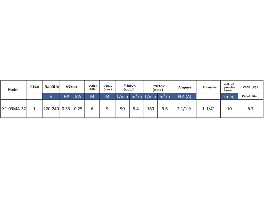 X1-03MS 230V, 0,25KW S MAGNETICKÝM PLAVÁKOM
